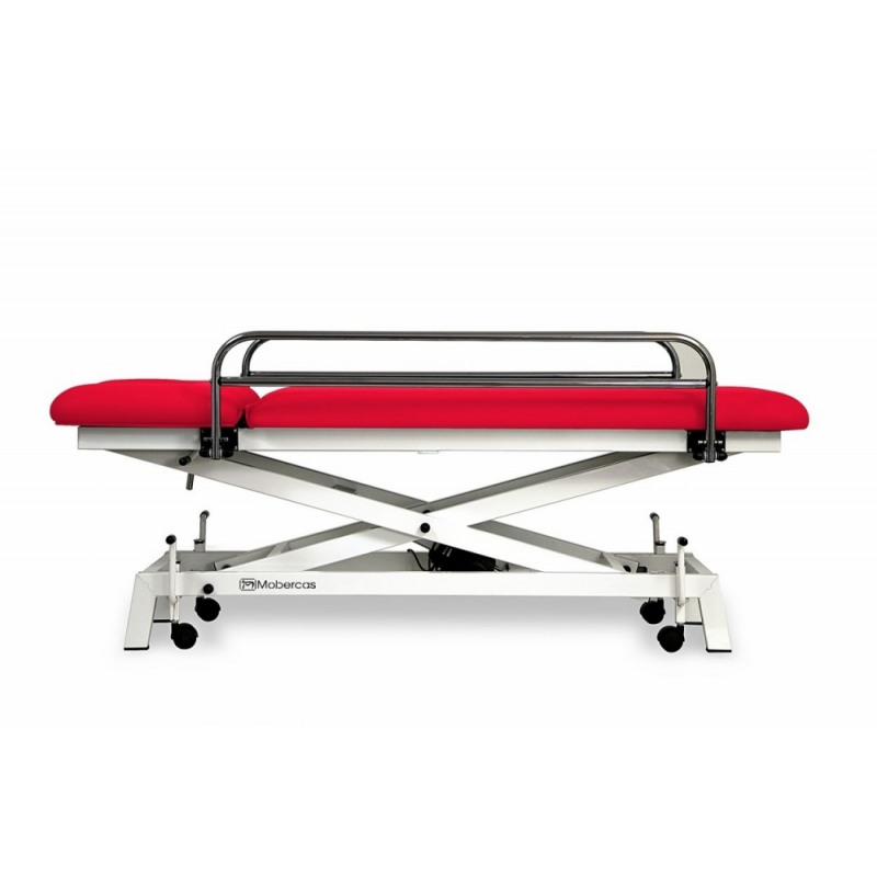 Barella elettrica per pediatria a 2 sezioni, con alzata dritta senza spostamento laterale, guide, calotta facciale e ruote a scomparsa.