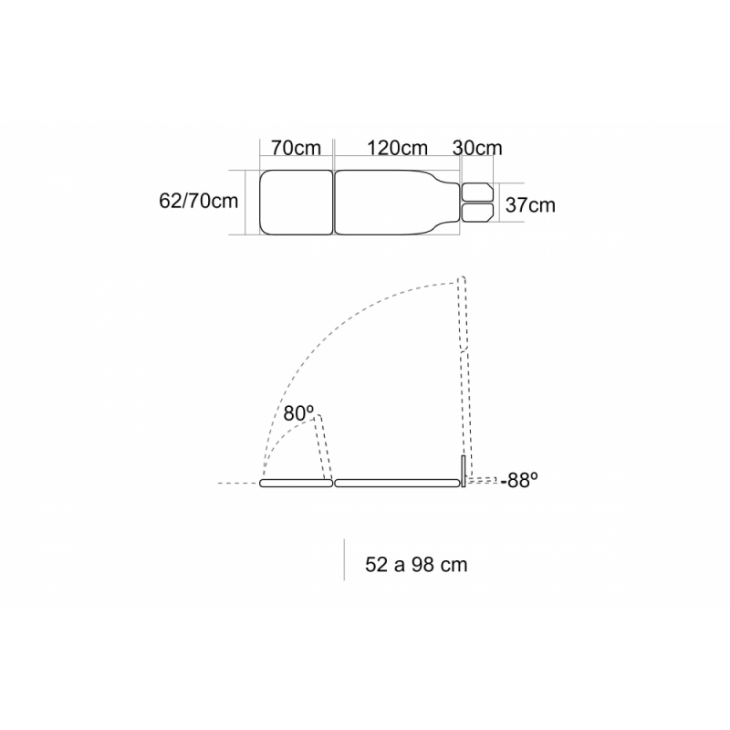 Barella in piedi a 2 sezioni | (70+120+30)x62 o 70 cm | Altezza regolabile | CE-2220-PI