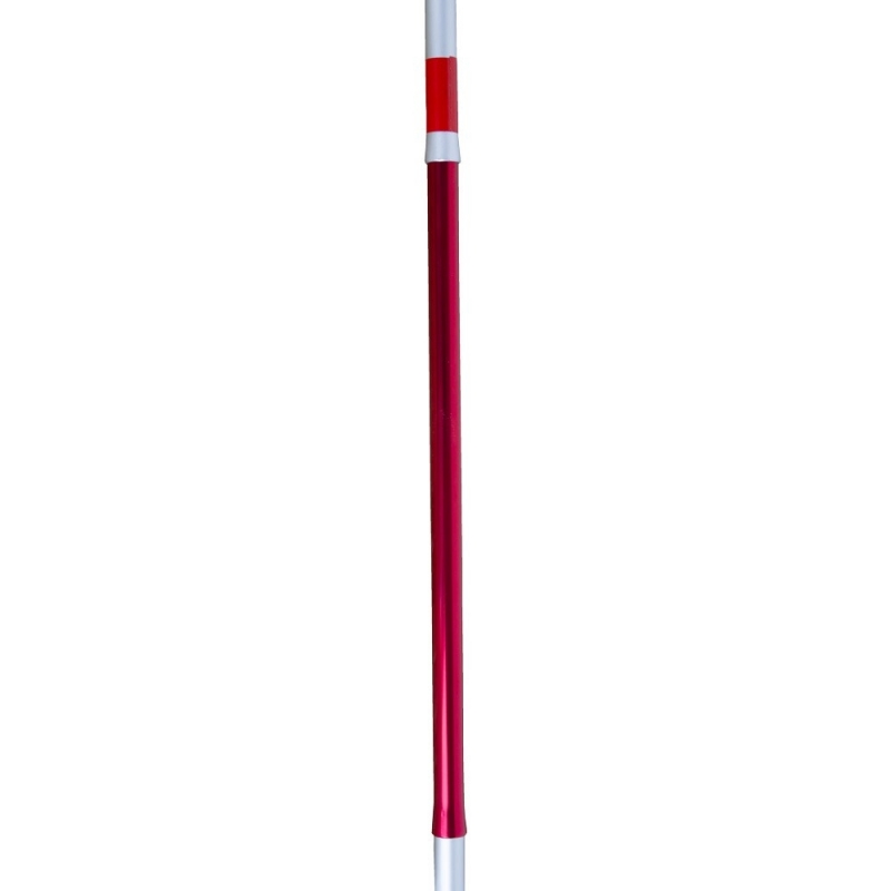 Bastone pieghevole e leggero in alluminio per sordociechi. Pieghevole in quattro sezioni, ha un' impugnatura in plastica morbida con una cinghia.