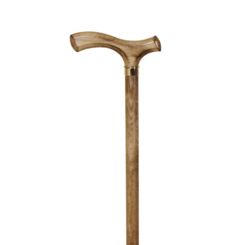 Questo bastone da passeggio in legno con anello è fatto di legno di faggio fiammato. È un bastone dal design semplice ma elegante, che ha un manico ergonomico per adattarsi alla mano della persona e fornire un maggiore comfort.