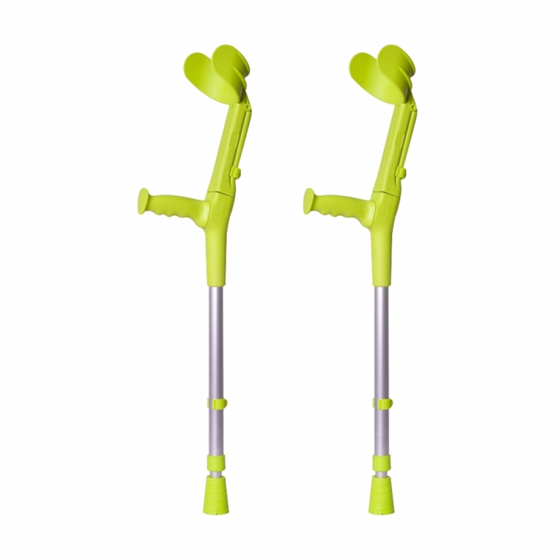 Questi bastoni inglesi color pistacchio per bambini sono molto leggeri e resistenti. Sono fatti di alluminio e termoplastica. Sono regolabili in altezza, con 9 posizioni della stampella e 5 posizioni del gomito.
