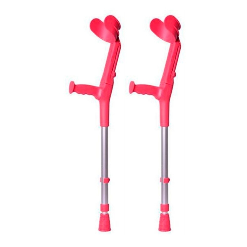 Questi bastoni inglesi da passeggio per bambini in rosso corallo sono molto leggeri e robusti. Sono fatti di alluminio e termoplastica. Sono regolabili in altezza, con 9 posizioni del bastone e 5 posizioni del gomito.