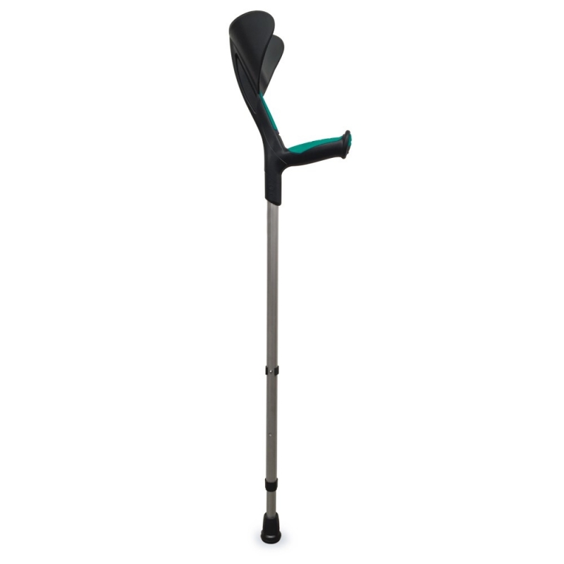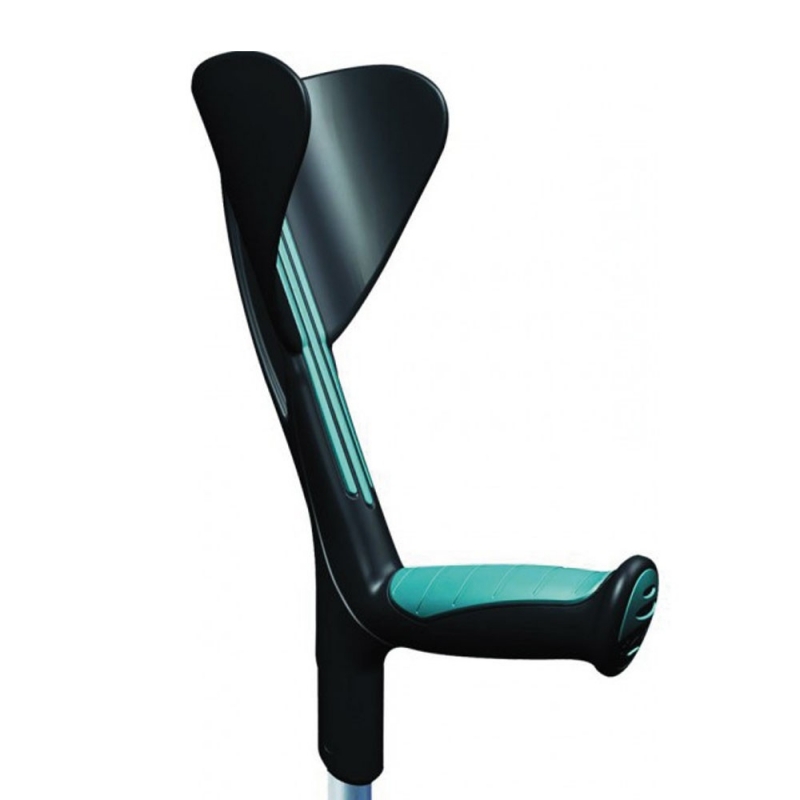 È realizzata in alluminio ed impugnatura termoplastica, con una sovra-iniezione di polipropilene ed elastomero nella zona di contatto con la mano e il braccio. Ciò riduce la pressione della mano sulla stampella, evitando abrasioni o vesciche.