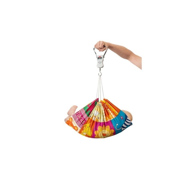 Bilancia elettronica a sospensione per pesare neonati. Realizzato in acciaio, è composto da un gancio cromato per la pesatura dei pantaloni, una maniglia per tenere la bilancia e un ampio schermo LCD dove vengono visualizzati i risultati. Ha la capacità di misurare pesi fino a 20 kg con una precisione di 20 grammi. Spicca il suo comfort per la casa, poiché pesando solo 200 grammi e offrendo semplici funzionalità, i genitori potranno tenere traccia del peso quotidiano del loro bambino. È un prodotto di alta qualità che ha superato i test più impegnativi per garantire la massima qualità e affidabilità. Tra gli altri, ha il certificato ISO 9001, uno standard che garantisce i più alti requisiti in ricerca, produzione, vendita e assistenza tecnica.