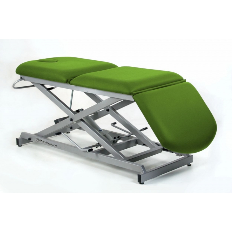 Barella tipo poltrona idraulica a 3 sezioni con alzata dritta senza spostamento laterale, con portarotolo e calotta facciale.
