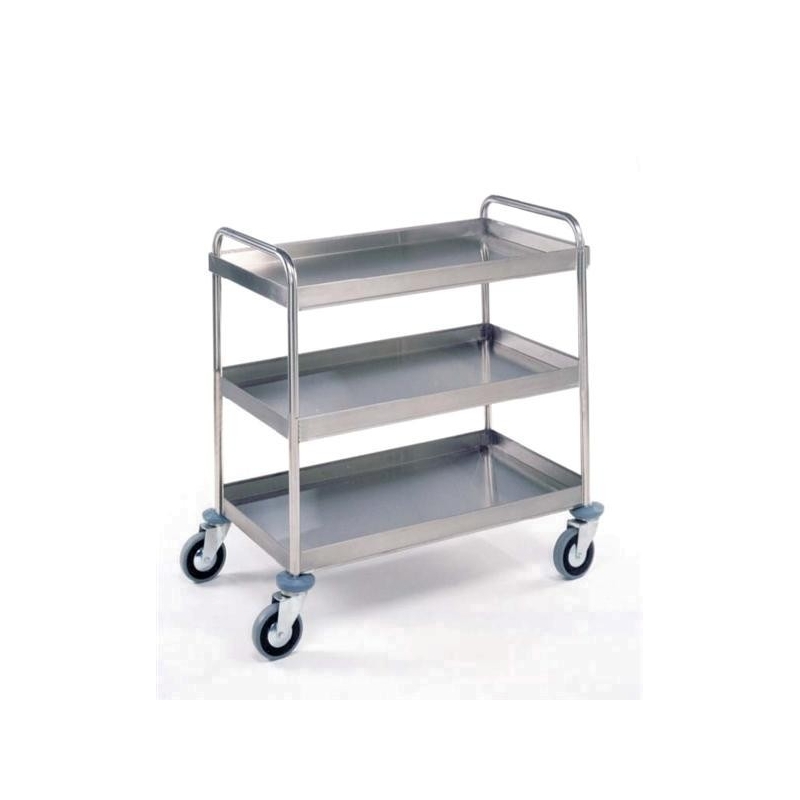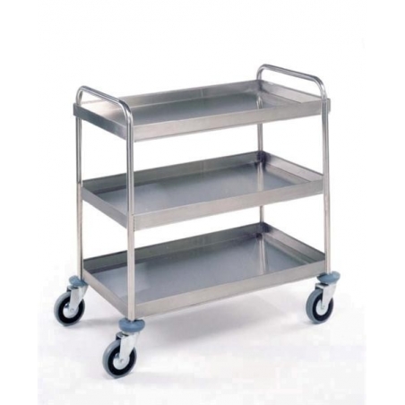 Realizzato in acciaio inox. 3 vassoi di 900x500mm. 125mm ruote