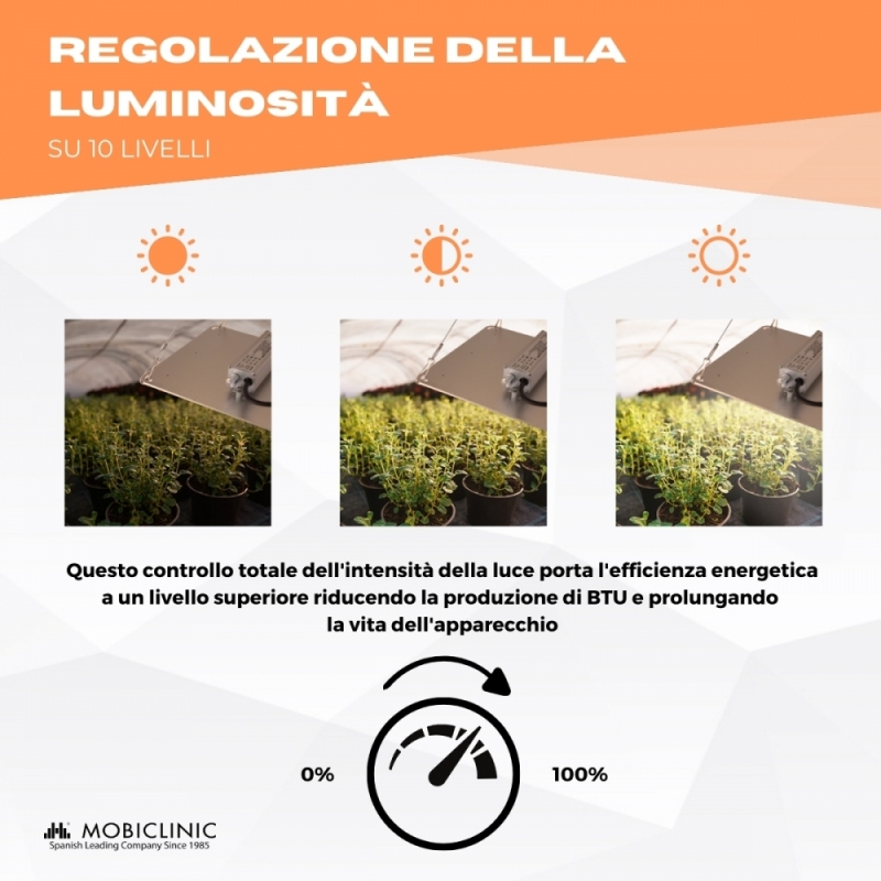 EFFICIENZA ENERGETICA: questa luce per piante include 10 livelli di luminosità regolabili (10%, 20%, 30%, 40%, 50%, 60%, 70%, 80%, 90% e 100%), consentendoti di scegliere quello più adatto luminosità per le tue piante, regolando individualmente l'intensità della luce a spettro completo, luce rossa 660 nm + IR 730 nm e luce 460 bule. Questo controllo totale dell'intensità luminosa consente di portare l'efficienza energetica a un livello superiore, riducendo la produzione di BTU e prolungando la vita utile dell'apparecchio.