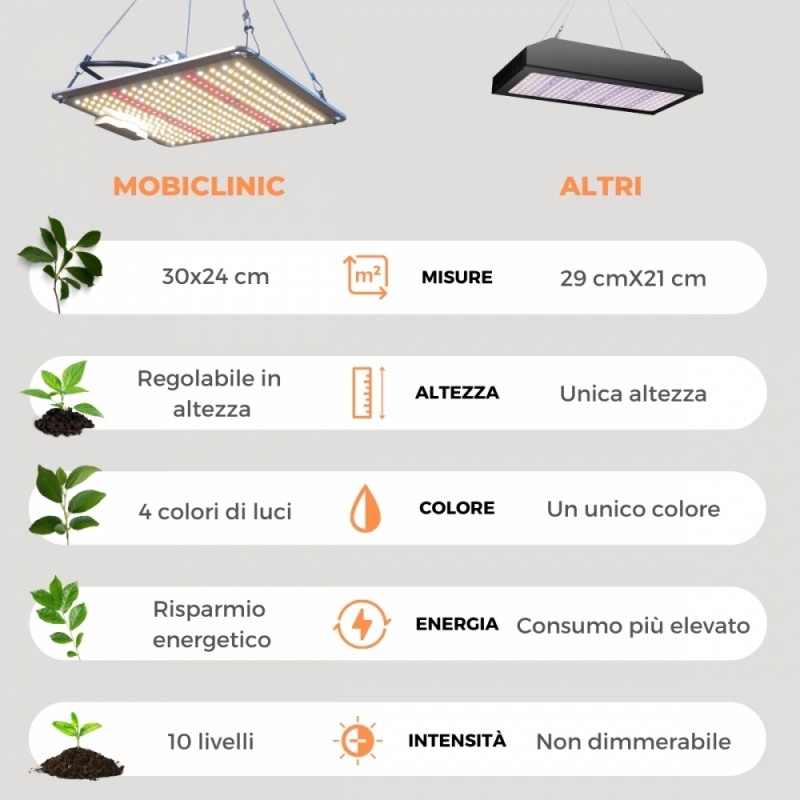 CURA DELLE TUE PIANTE: La luce per piante Growlight si adatta alle esigenze specifiche delle tue piante, migliorando la fotosintesi e garantendo una salute ottimale. Le testimonianze dei nostri utenti supportano uno sbalorditivo aumento del rendimento del 38% dopo aver fatto il salto alla nostra lampada di coltivazione. Con un'emissione luminosa impressionante fino a 2,8 mol/j, le tue piante saranno nelle migliori mani.