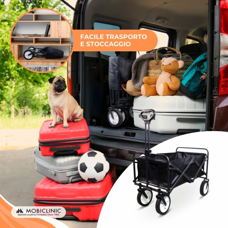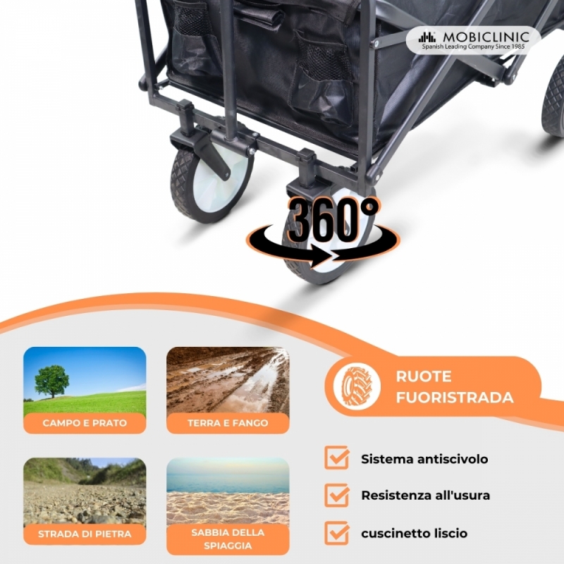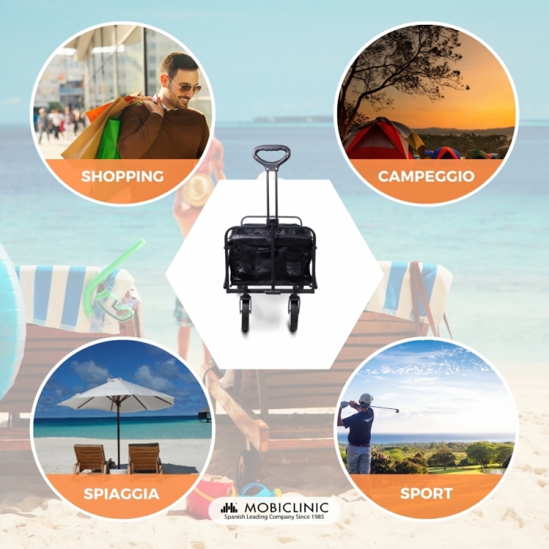 Carrello da trasporto spiaggia giardino | Maniglia regolabile | 85x54,5x75 cm | Pieghevole | Ruote 360° | Duna Pro | Mobiclinic
