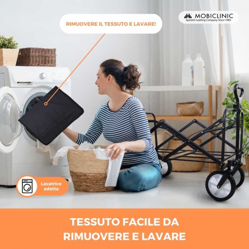 PIEGHEVOLE E PORTATILE: il suo design pieghevole lo rende facile da riporre e trasportare, rendendolo un'opzione perfetta per l'uso quotidiano e ovunque. Quando non viene utilizzato, il carrello da trasporto si piega in modo compatto, occupando uno spazio minimo ed essendo facile da trasportare ovunque. Inoltre, se lo desideri, puoi rimuovere la parte tessile.