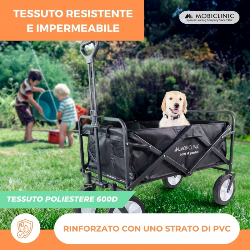 TUTTI I TERRENI: Il design del carrello da carico Duna si distingue per la sua versatilità. Con la sua capacità di affrontare vari terreni, dalle superfici pianeggianti ai terreni più accidentati , questo carrello da trasporto diventa la scelta ideale per le attività quotidiane e all'aperto.