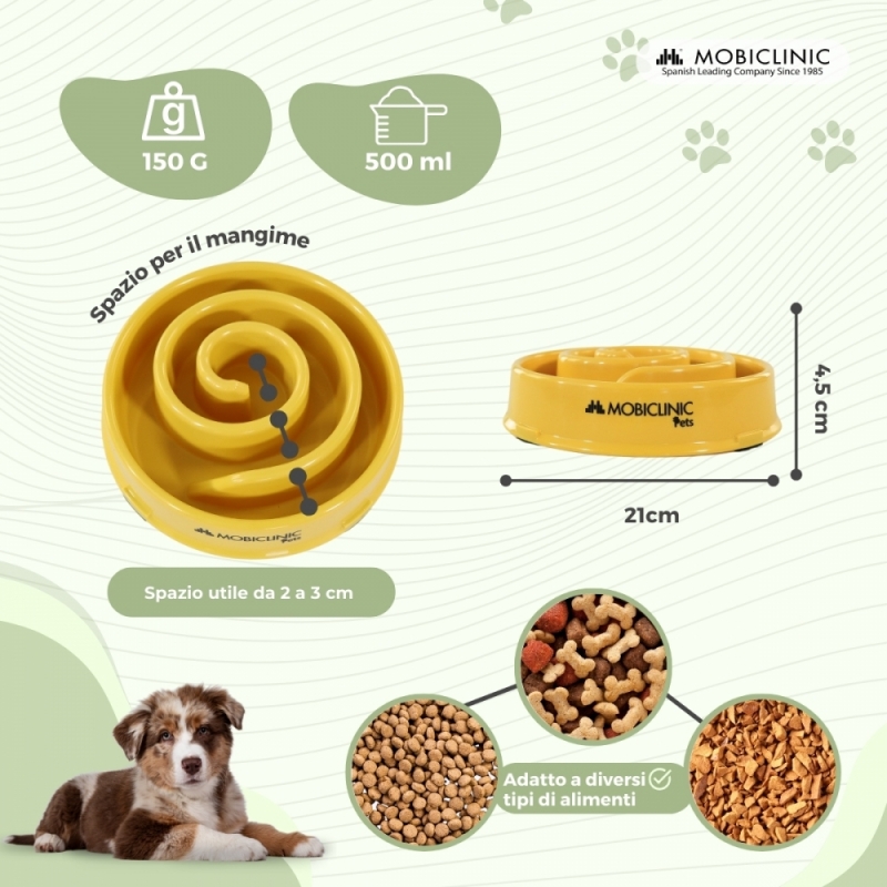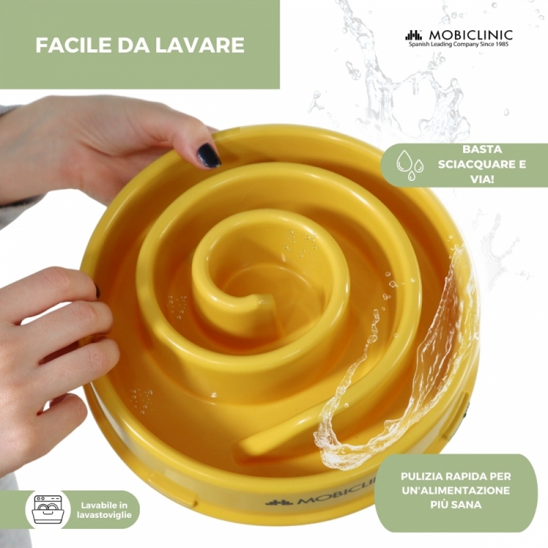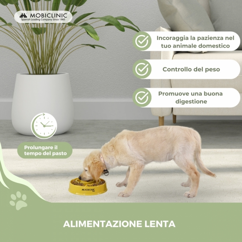 L'alimentatore lento MobiEat va oltre il semplice rallentamento dell'alimentazione del tuo animale domestico. Questa ciotola innovativa non solo previene il vomito e riduce il gonfiore dello stomaco , ma favorisce anche una digestione più sana .