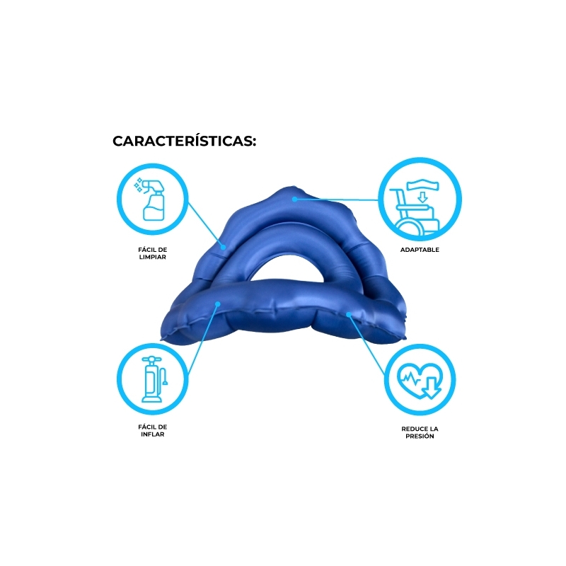 Le persone che devono trascorrere lunghi periodi di tempo sedute nella stessa posizione sono vulnerabili alle piaghe da decubito o alle ulcere da decubito. In questi casi, si raccomanda l'uso di prodotti antidecubito per la prevenzione o il trattamento. Le cellule d'aria del cuscino antidecubito con forma rotonda, aiutano a ridurre al minimo la pressione esercitata dal corpo, migliorando la circolazione sanguigna e contribuendo a prevenire le piaghe da decubito. Grazie al suo design, questo cuscino ad aria si adatta al corpo dell'utente ad ogni movimento. Inoltre, contribuirà a ridurre la pressione esercitata dal corpo sulla seduta. Questo cuscino ad aria antidecubito è facile da gonfiare. È dotato di una valvola per l'aria incorporata. Include una pompa per il gonfiaggio.
