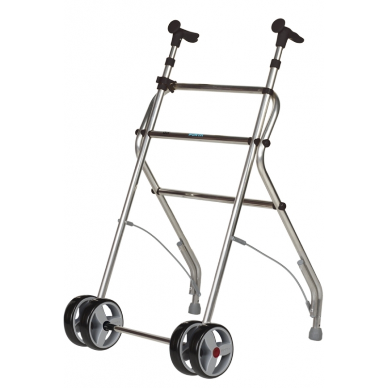 Il girello da interno AIR è un girello di base, molto leggero (pesa poco più di 2,5 kg). È facile da piegare e il deambulatore sta in piedi, senza bisogno di sostenerlo da nessuna parte una volta piegato. Questo girello è disponibile con impugnatura anatomica per un maggiore comfort per l'utente.