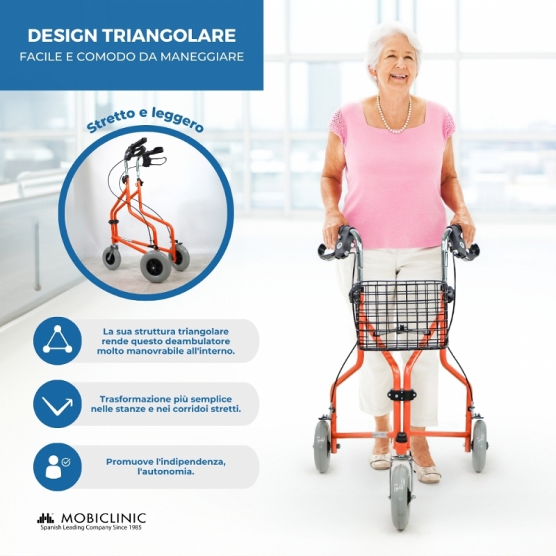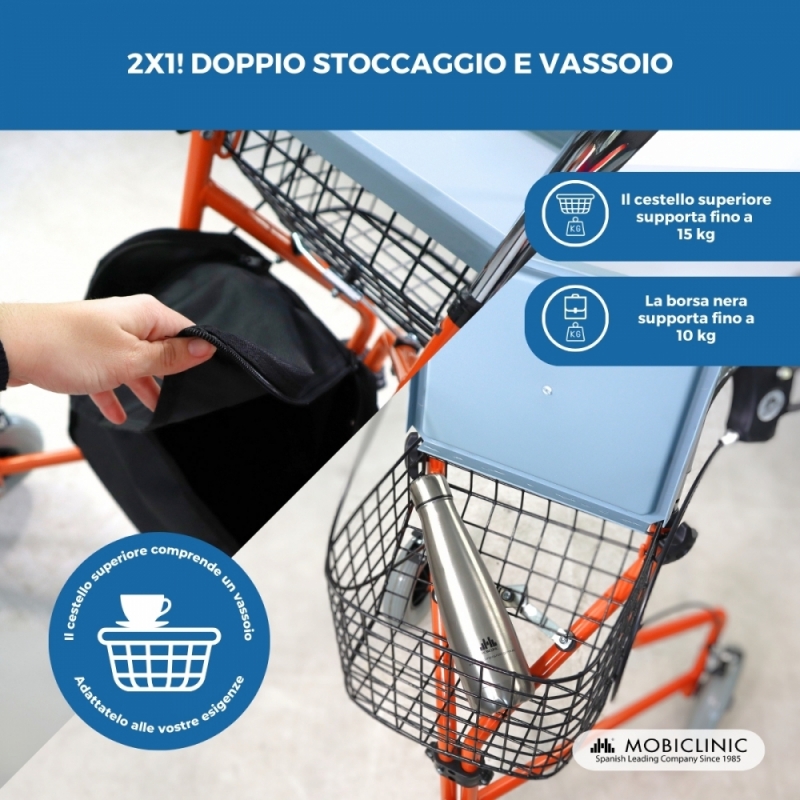 Ti consigliamo di usare questo girello per anziani sia dentro che fuori casa, per le tue passeggiate o anche per fare la spesa! Inoltre, grazie al suo design funzionale e moderno, è dotato di un vassoio ed un cestino che ti permette di portare sempre con te i tuoi oggetti personali.