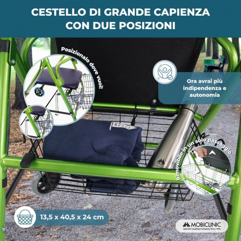 UTILE: questo deambulatore con sedile è dotato di un pratico cestino sotto di esso per facilitare compiti come la spesa o il trasporto di oggetti.