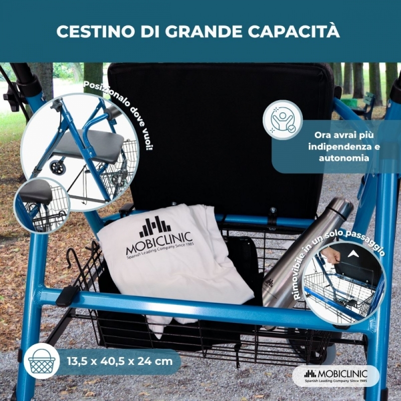 UTILE : Questo deambulatore con sedile include un pratico cestino sotto per facilitare compiti come fare la spesa o trasportare oggetti.