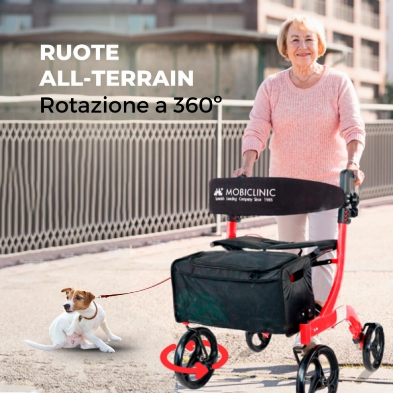 Questo modello di deambulatore a quattro ruote è un'opzione versatile e confortevole per gli anziani e le persone con mobilità ridotta. Il suo design e il semplice sistema di piegatura lo rendono facile da trasportare e maneggiare da qualsiasi utente. Il suo telaio in alluminio e il telaio in acciaio lo rendono un deambulatore leggero ma allo stesso tempo resistente, grazie anche alla robustezza delle ruote anteriori fino a 23 cm di diametro. Il suo design moderno ed ergonomico consente di adattarne l'utilizzo per attraversare un'ampia varietà di scenari.