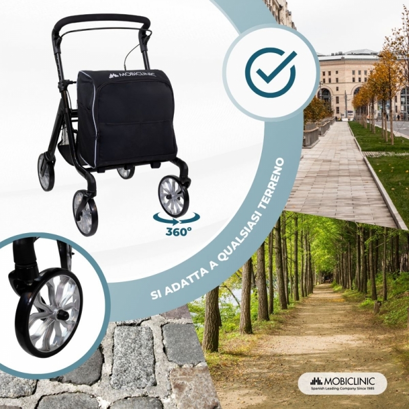 Il carrello portaspesa Formen Mobiclinic è una soluzione 2 in 1 progettata per offrire mobilità, sicurezza e praticità. Il suo design consente un facile controllo con una sola mano grazie al manubrio a leva singola, rendendolo un alleato perfetto per chi cerca maggiore indipendenza nella vita quotidiana.