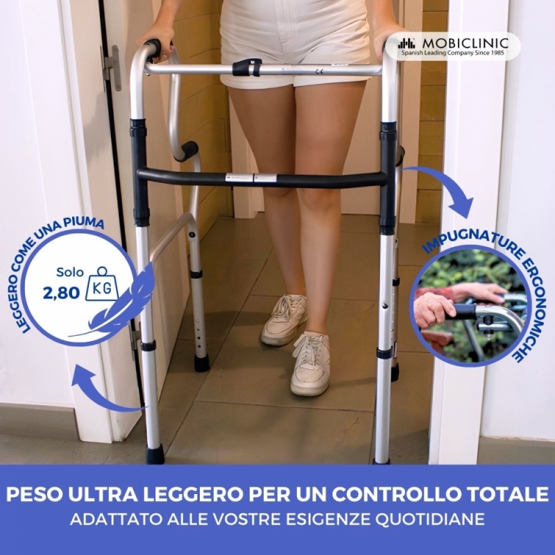 Il deambulatore in alluminio ti garantisce la massima leggerezza e facilità di movimento.