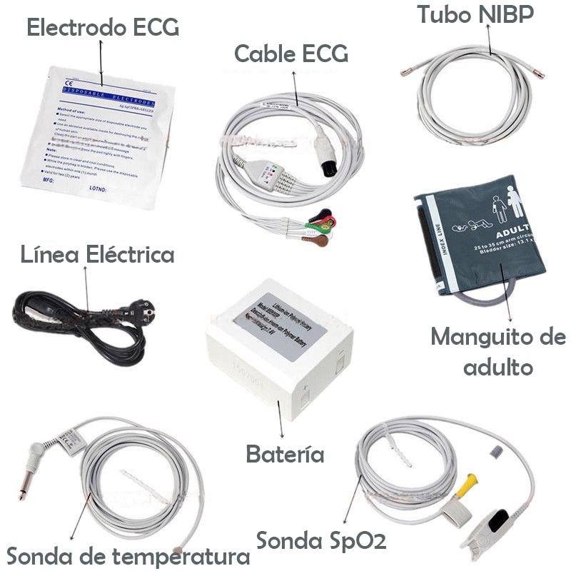 Il monitor multiparametrico portatile consente la misurazione non invasiva, la visualizzazione e la registrazione della pressione arteriosa (NIBP), della saturazione dell'ossigeno (SPO2), della respirazione, l'elettrocardiogramma e la misurazione della temperatura. Funzione di calcolo delle dosi dei farmaci.