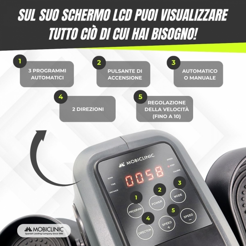 Mini ellittica | 10 velocità | Schermo LCD | Pedali antiscivolo | Grigio | Veleta | Mobiclinic