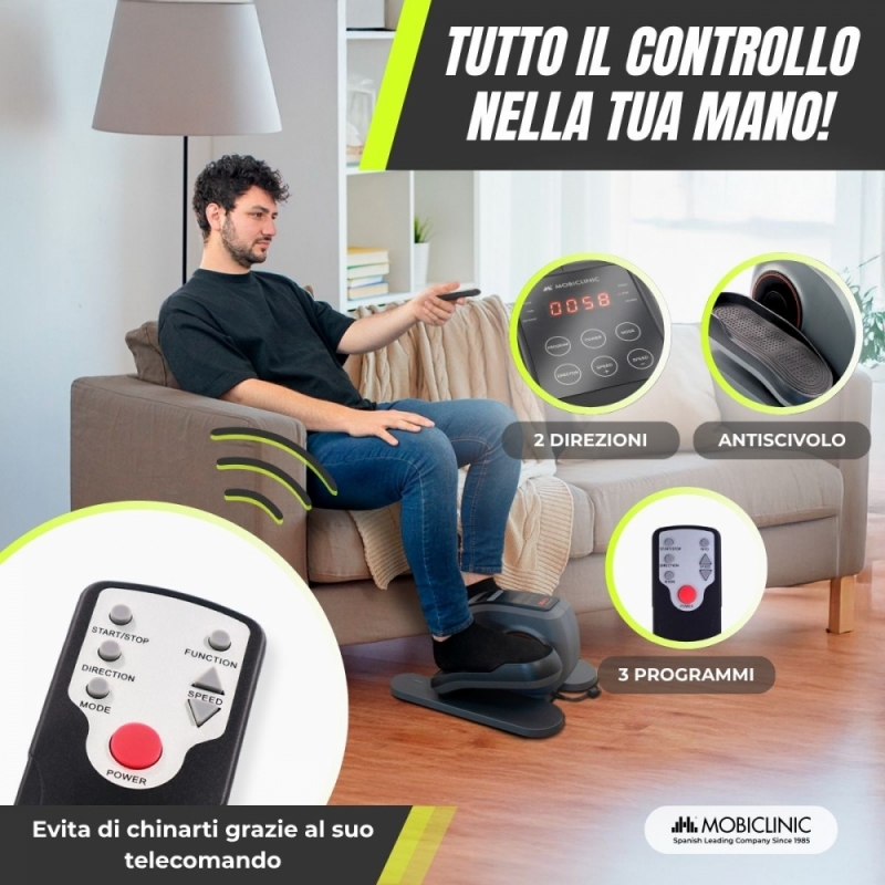La mini ellittica Veleta è ottima per migliorare la salute cardiovascolare, la coordinazione, l'equilibrio e la flessibilità, oltre a tonificare il corpo e ridurre lo stress quotidiano. Questa mini ellittica elettrica, è progettata per l'uso quotidiano in quanto può essere utilizzata sia in ufficio che a casa. Deve essere usata solo da seduti.