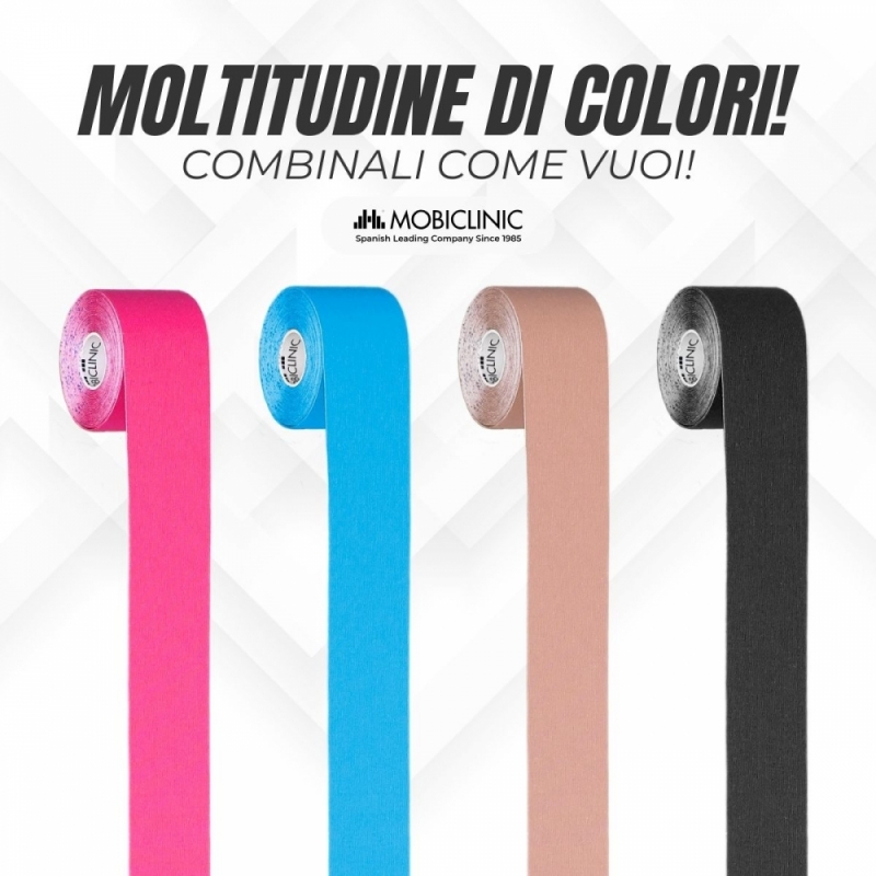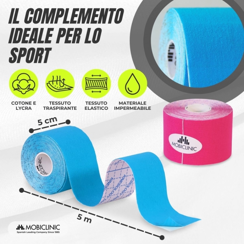 Confezione da 2 Kinesiotape | Rosa e Blu | Bendaggio neuromuscolare | 5mx5cm | Mobitape | Mobiclinic