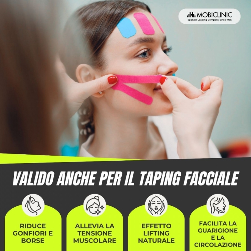 Inoltre, il tessuto fine e morbido di questo nastro taping lo rende perfettamente aderente alla pelle. È anche ideale per gli atleti, grazie alle sue diverse modalità di applicazione e che consente la piena mobilità. Può essere utilizzato per diversi giorni e offre soluzioni terapeutiche preventive e migliora le prestazioni sportive.
