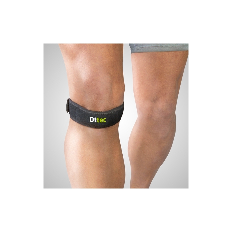 Incorpora un cuscinetto cilindrico di materiale viscoelastico che esercita pressione sul tendine rotuleo.