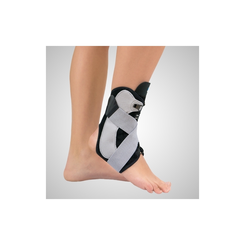 Ha una cinghia di supporto elastica laterale per un bendaggio a "8" che permette il controllo in varo/valgo. Si regola tramite allacciatura.
