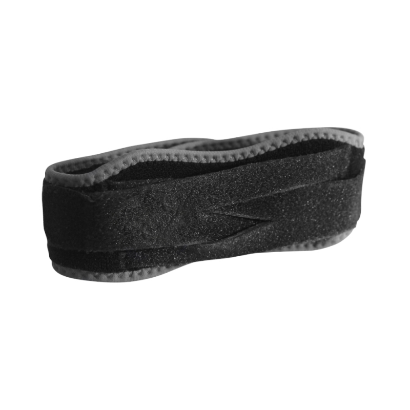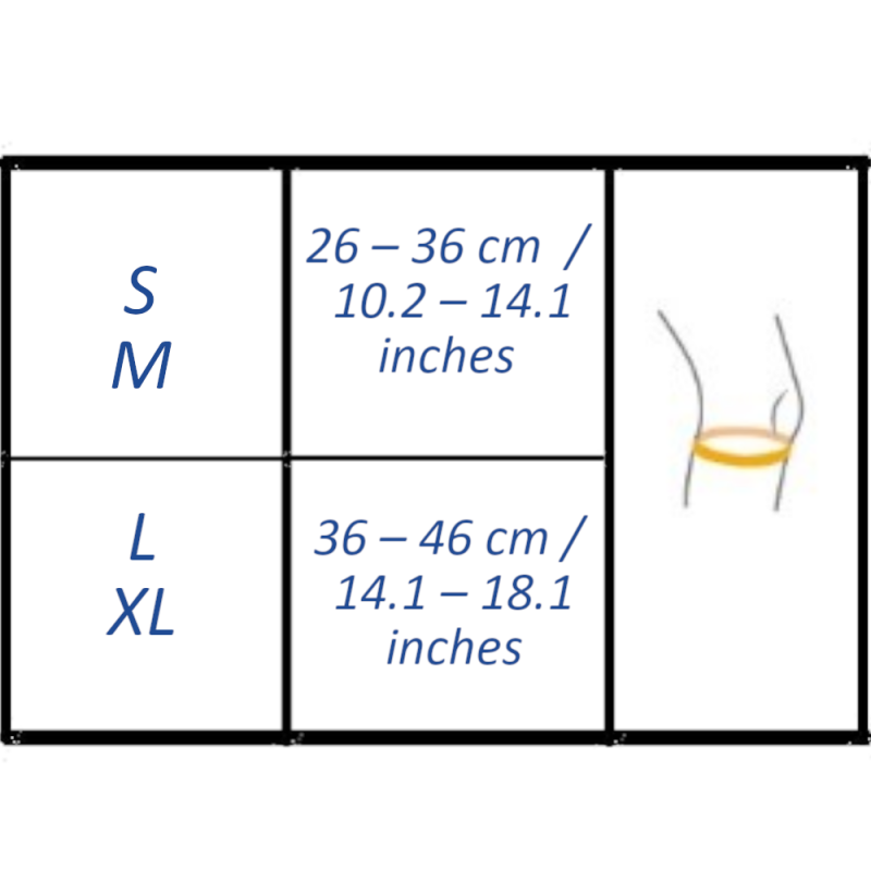 Cuscinetto di compressione infra rotulea con chiusura in velcro realizzata in materiale siliconico multistrato (Silprene-F), traspirante ed elastico, che permette di regolare la compressione e la trazione esercitata sulla zona interessata in base alle esigenze di ogni paziente.