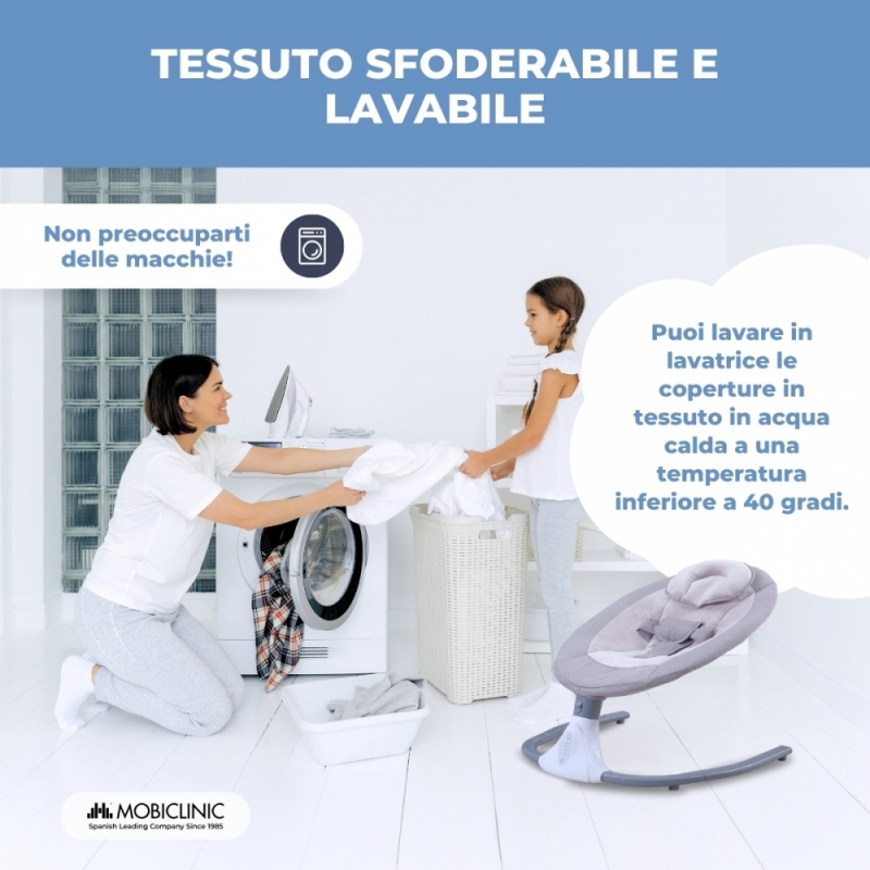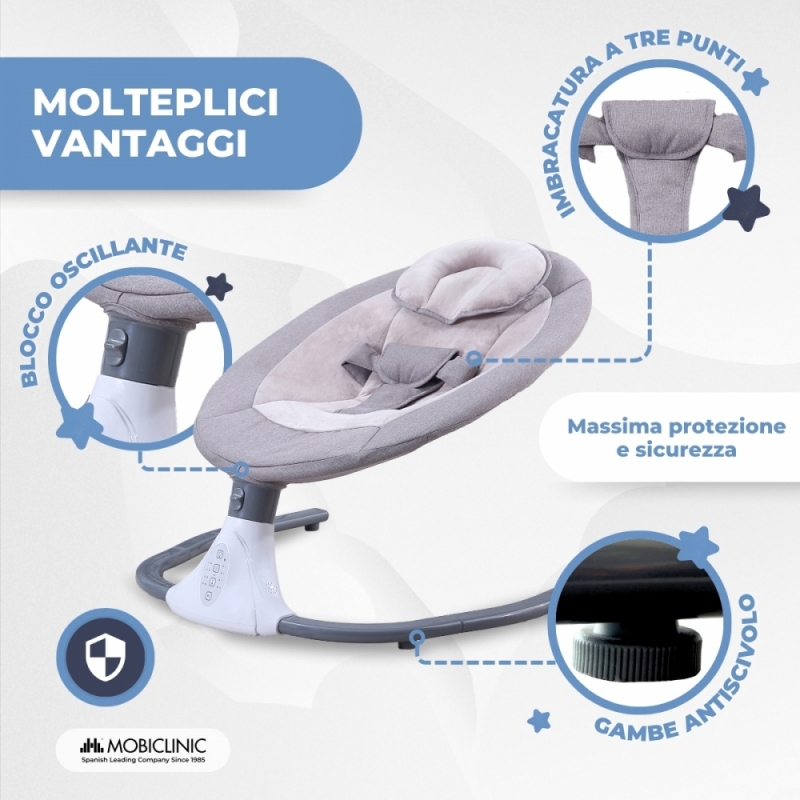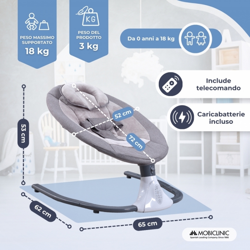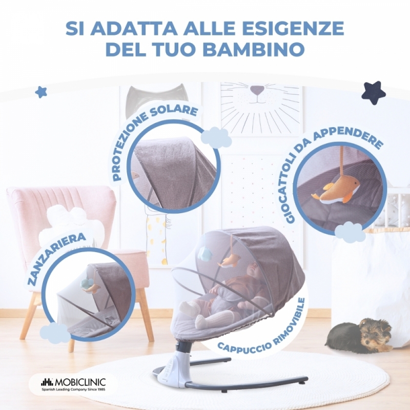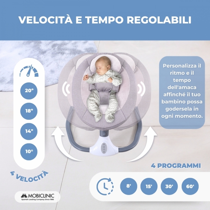FUNZIONE OSCILLAZIONE REGOLABILE: Offre velocità multiple per adattare il movimento alle preferenze del bambino. Ideale per calmare e favorire il sonno.