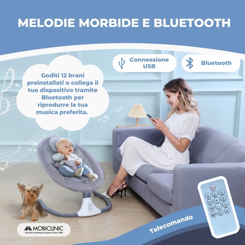 Funzionalità utili per i genitori: l'amaca include un telecomando che semplifica la regolazione delle impostazioni senza doversi alzare. I genitori possono controllare la velocità dell'altalena, riprodurre musica o attivare il timer da remoto, il che è particolarmente utile quando il bambino sta già dormendo o quando i genitori sono impegnati in altre attività.