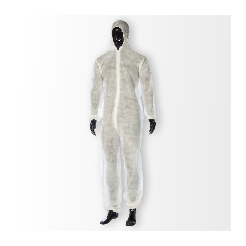 Tuta in polipropilene con cappuccio, offre protezione contro lo sporco in aree senza rischio professionale. Polsi e caviglie elastiche per una migliore adattabilità. Viene utilizzato per lavori di manutenzione.