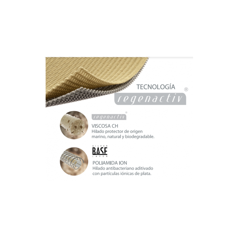 RIUTILIZZABILE: il suo tessuto Regenactiv, considerato un'innovazione nei tessuti tessili terapeutici da più di 10 anni, consente il riutilizzo e può essere lavato a mano o in lavatrice a una temperatura massima di 60ºC. Lavabile/riutilizzabile fino a 135 lavaggi.