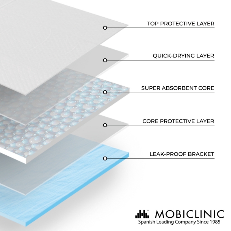 - Strato 5: supporto a prova di perdite/marrone giallastro/protegge l'urina dalle perdite