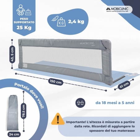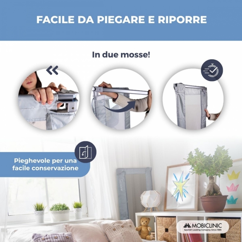 Scopri la sponda per letto Mod Dreamy, ideale per garantire la sicurezza e il riposo dei più piccoli nel passaggio dalla culla al letto, dai 18 mesi ai 5 anni, con un peso massimo di 25 kg. È facile e veloce da montare, senza bisogno di attrezzi aggiuntivi. Perfetta per letti singoli con materassi fino a 70 cm di larghezza.