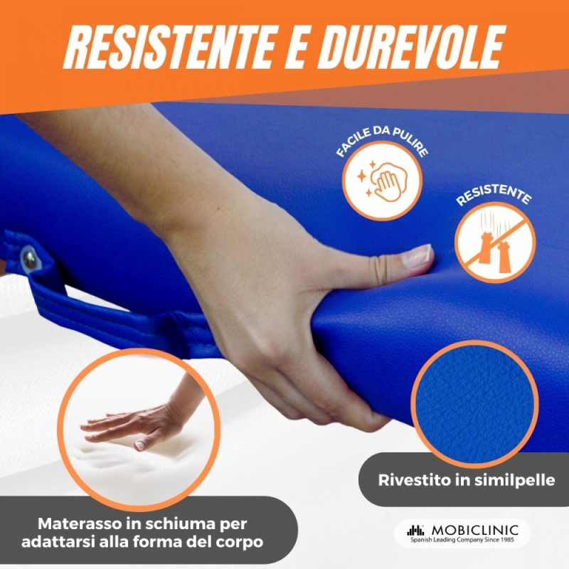 CONFORTEVOLE: questo lettino da massaggio ha un rivestimento in similpelle molto elegante e piacevole al tatto con la pelle.