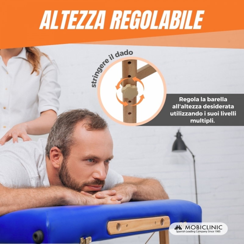 SICURO: il lettino da massaggio ha sistemi di bloccaggio in modo che non si apra o si chiuda in modo casuale e mostri molta resistenza al carico.