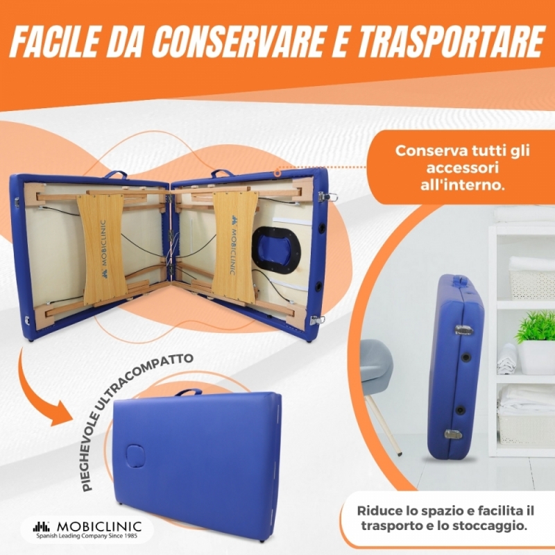 PIEGHEVOLE: quindi occupa poco spazio e può essere trasportato se si effettuano visite a domicilio. Per un maggiore comfort, è costituito da maniglie che facilitano il trasporto. Include borsa da viaggio.