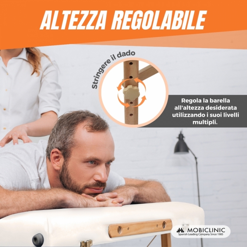 SICURO: il lettino da massaggio ha sistemi di bloccaggio in modo che non si apra o si chiuda in modo casuale e mostri molta resistenza al carico.