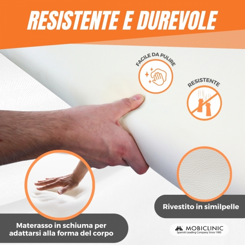 CONFORTEVOLE: questo lettino da massaggio ha un rivestimento in similpelle molto elegante e piacevole al tatto con la pelle.