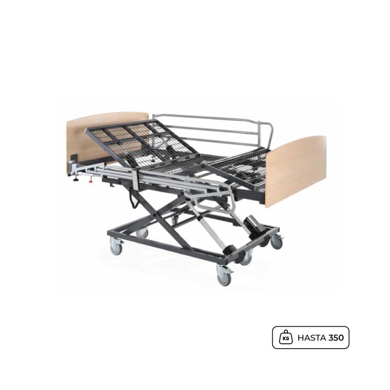 Questo letto bariatrico articolato elettrico con carrello elevatore si adatta alla curvatura della colonna vertebrale per godere di una postura rilassata e confortevole che favorisce il riposo del paziente. Inoltre, grazie al suo comando elettrico, il letto bariatrico può essere regolato in altezza.