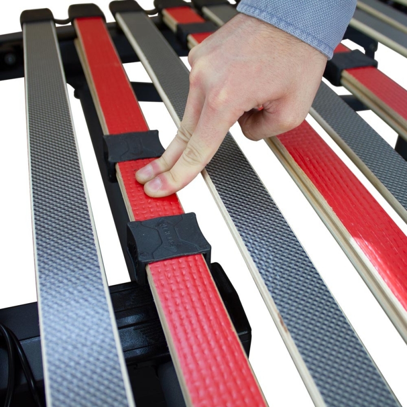 - Stecche di eucalipto grigie da 38 mm rivestite con rinforzo lombare su supporti inclinabili.