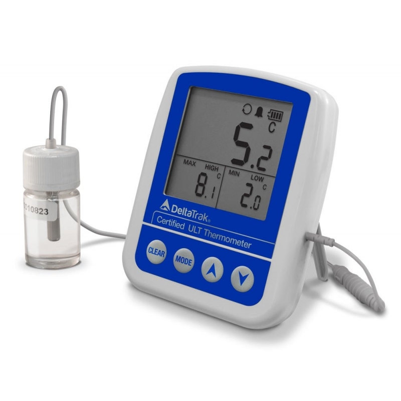 Termometro digitale con sonda esterna immersa in glicole che attutisce gli sbalzi di temperatura e assicura che le misurazioni non oscillino a causa delle frequenti aperture della porta del frigorifero o del congelatore. Allo stesso modo, questo sistema riproduce un ambiente simile a quello a cui sono esposte le soluzioni immagazzinate che vengono solitamente utilizzate nei laboratori e nelle farmacie. È dotato anche di un sensore interno per controllare la temperatura all'esterno del frigorifero. Include il certificato di conformità del produttore che garantisce il rispetto delle specifiche pubblicate, personalizzato con il tuo numero di serie.