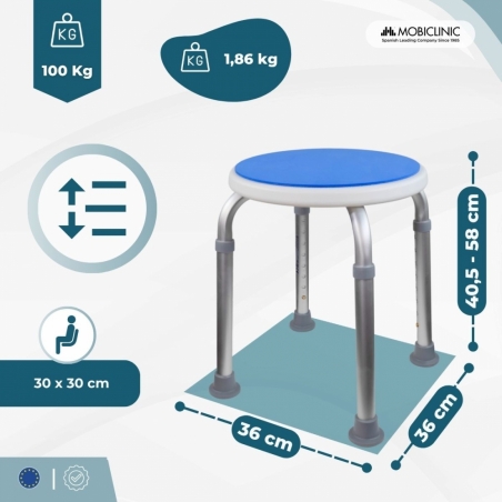 REGOLAZIONE RAPIDA E PRECISA: Questo sgabello da doccia è dotato di un sistema a pulsante per una regolazione dell'altezza facile e senza attrezzi. Offre 8 posizioni per soddisfare le diverse esigenze dell'utente.