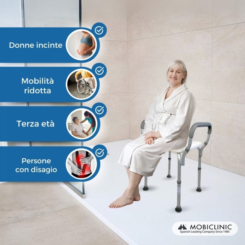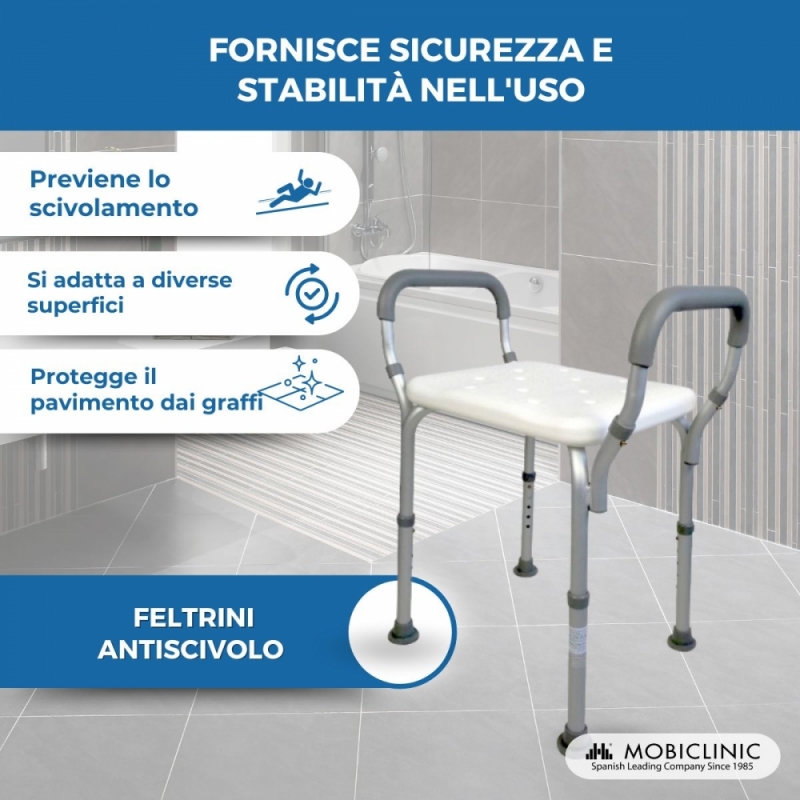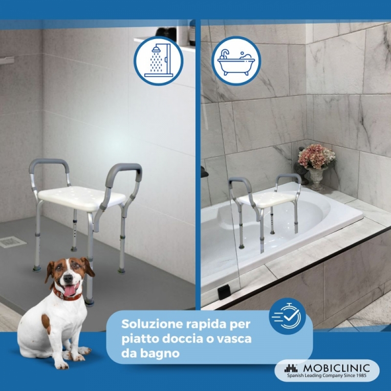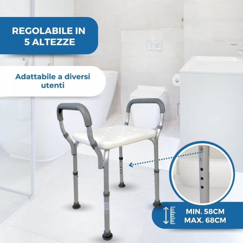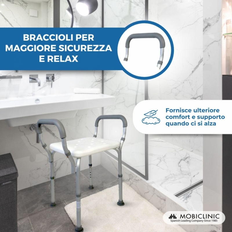 Per il comfort dell'utente, lo sgabello per vasca da bagno e doccia, ha braccioli imbottiti e facili da montare. Con un solo clic sarai in grado di metterli e smontarli in totale autonomia! Compra subito uno sgabello doccia disabili ed inizia a goderti la doccia in tutta tranquillità!