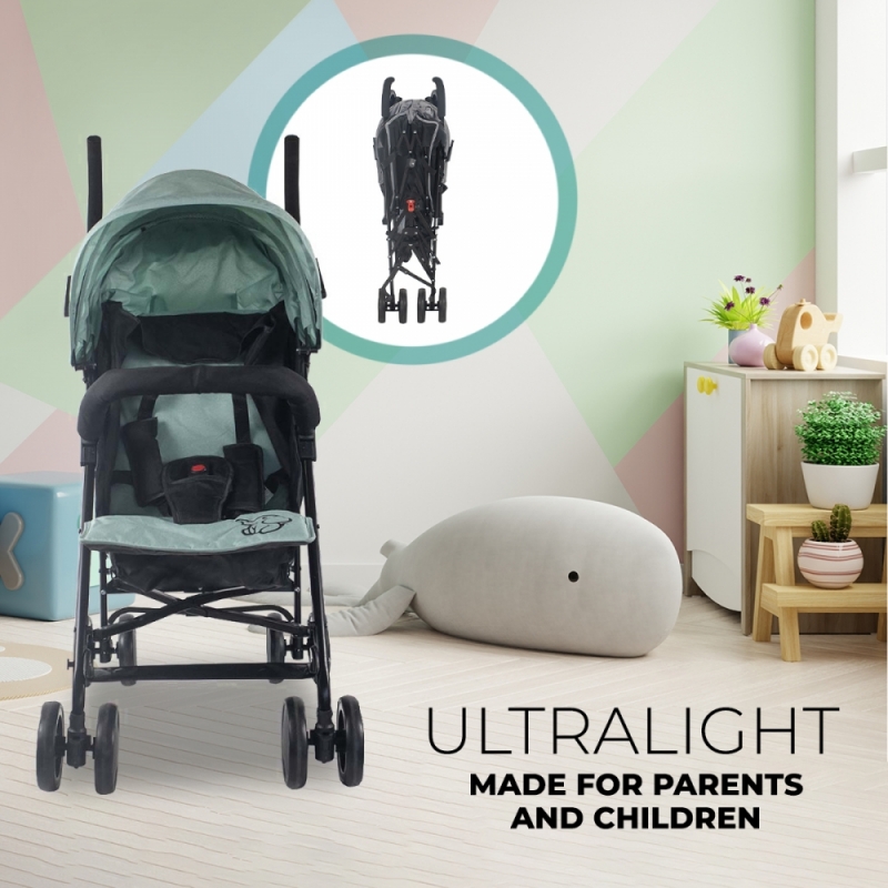 Inoltre, le dimensioni compatte del passeggino reclinabile Elefant, insieme al suo peso contenuto, lo rendono perfetto per i viaggi, per essere tenuto in macchina e per essere riposto. Questo passeggino pieghevole e leggero ha un doppio sistema di sicurezza in modo che possa essere facilmente ripiegato. Include anche un gancio di sicurezza per impedire l'apertura improvvisa quando è piegato.