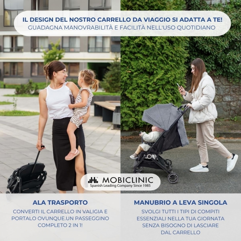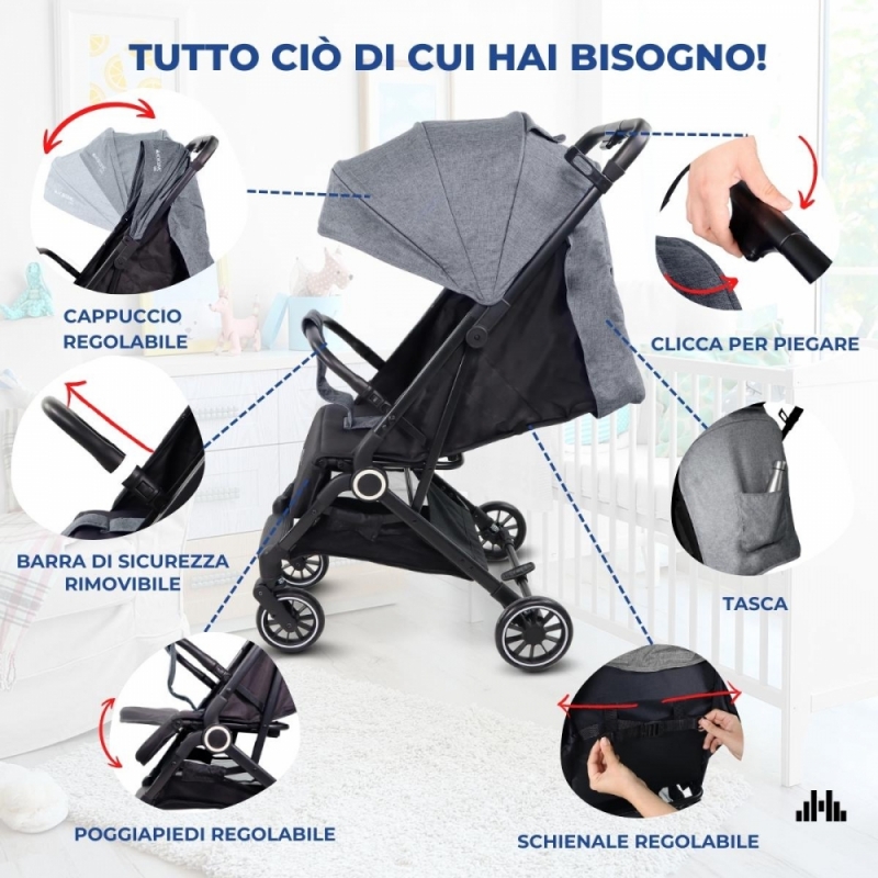 CONFORTEVOLE E FUNZIONALE: Il suo semplice funzionamento a leva singola e i materiali leggeri lo rendono un'opzione davvero comoda per genitori e bambini, poiché le sue quattro ruote ammortizzate offrono un movimento fluido.